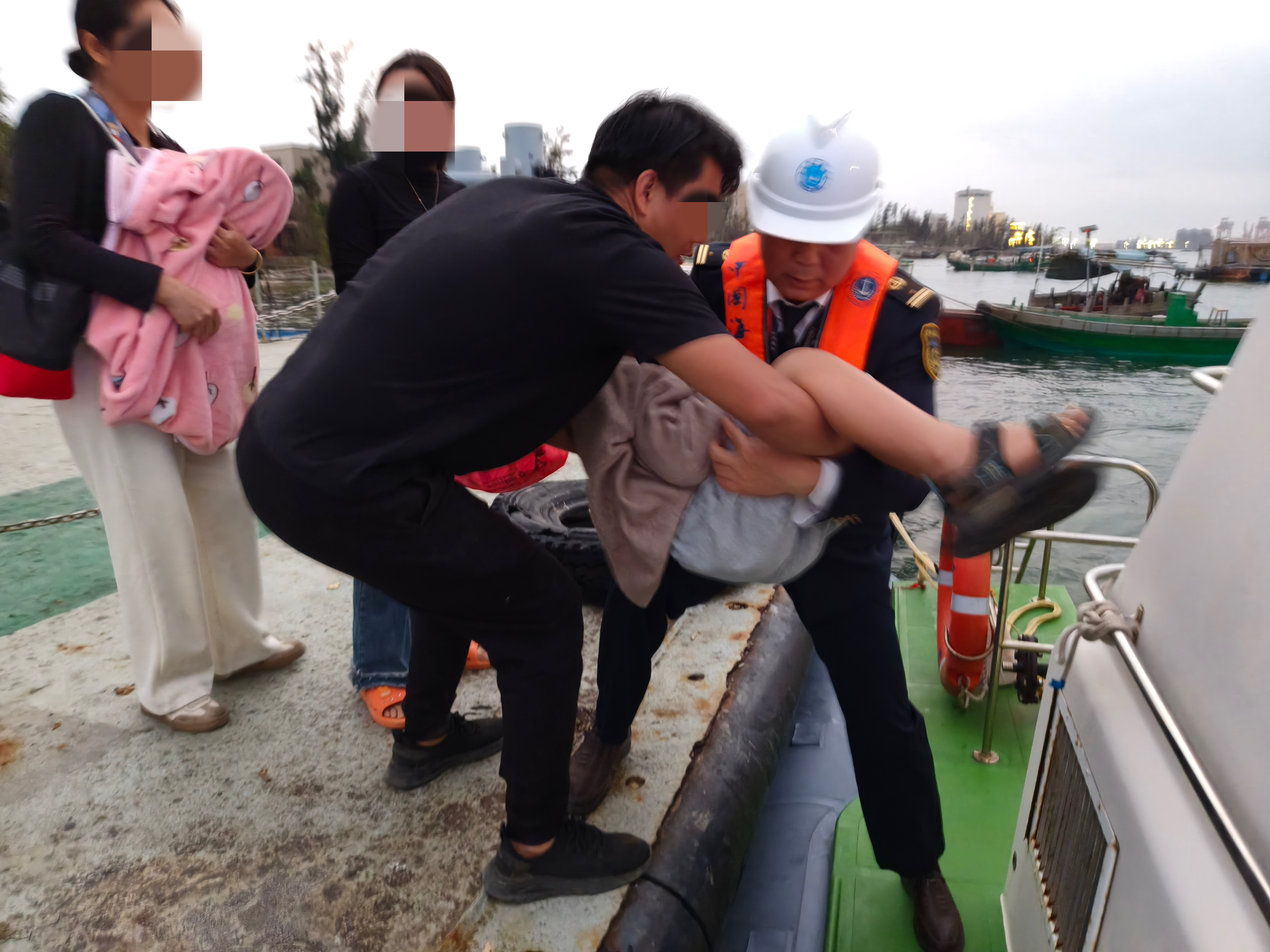 执法人员协助将受伤小孩转移至海巡船 陈伟骏摄